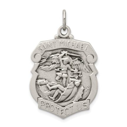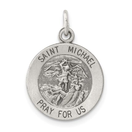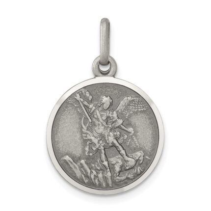 14k White Gold Polished and Satin Hollow St. Michael Medal Round Pendant