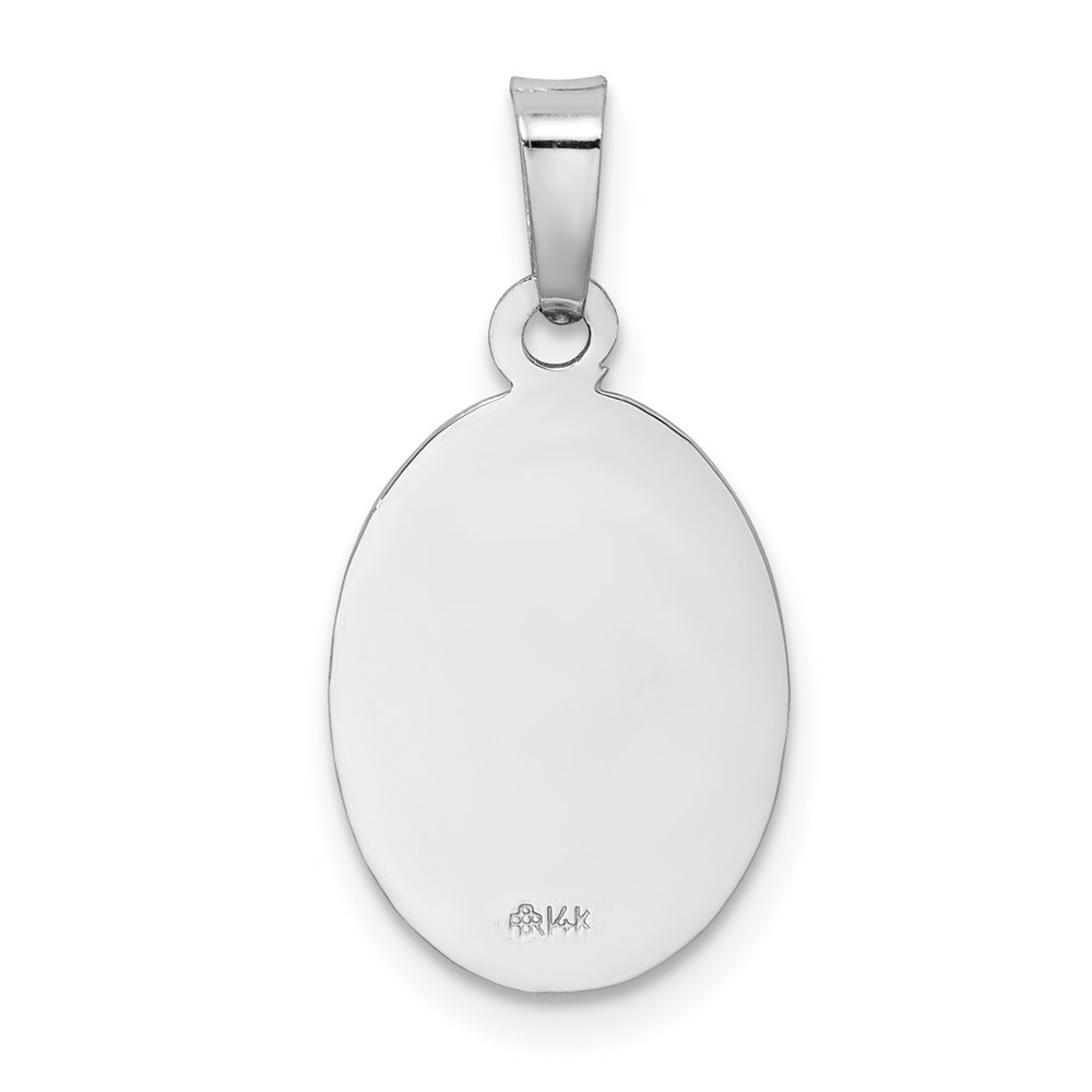 14k White Gold Polished and Satin Solid Saint Christopher Medal Oval Pendant