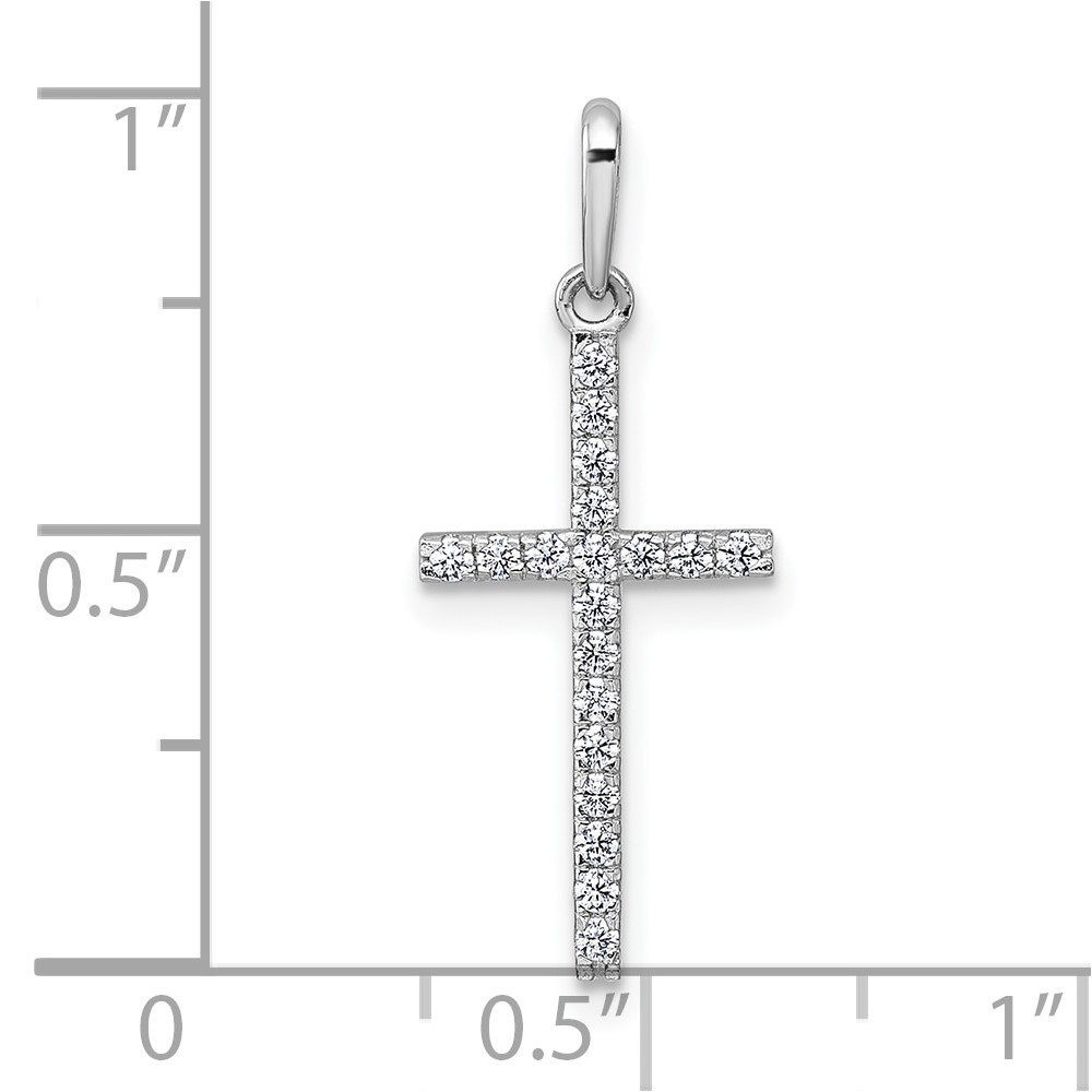 14k White Gold Polished CZ Latin Cross Pendant