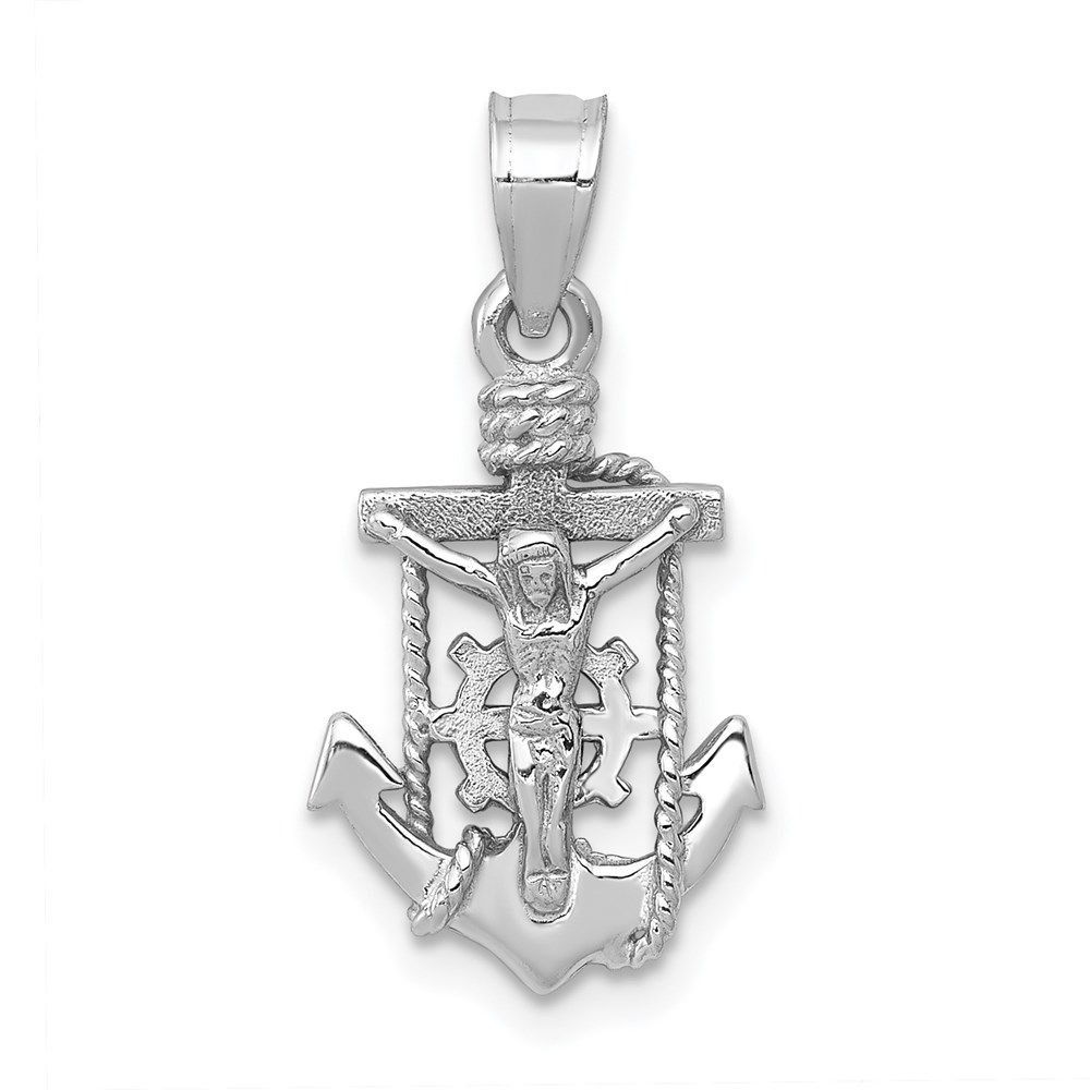 14k White Gold Polished Mariner Crucifix Pendant