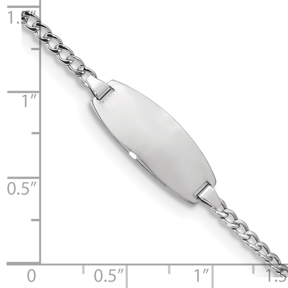 14k White Gold Polished Semi-Solid Chain/Solid Plate Curb Link Oval 18.5×8.5mm Plate 7 inch ID Bracelet