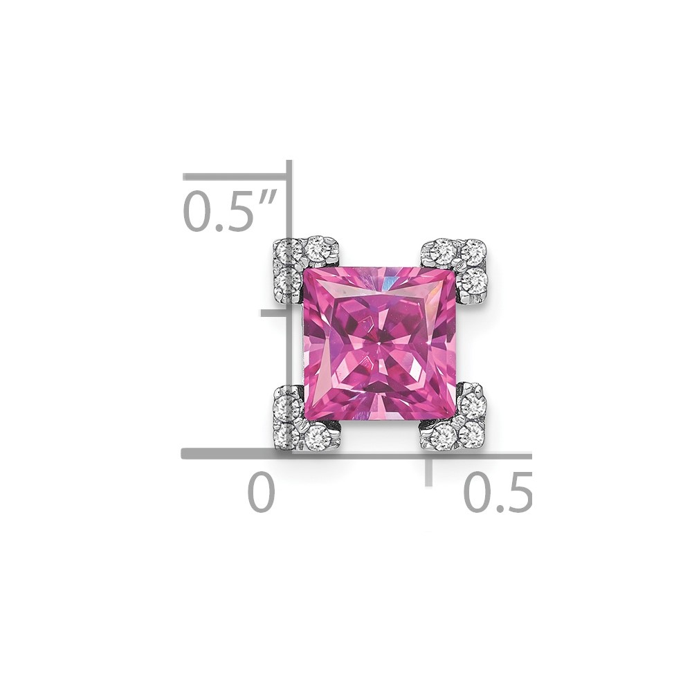 14k White Gold Square Lab Created Pink Sapphire and Diamond Chain Slide