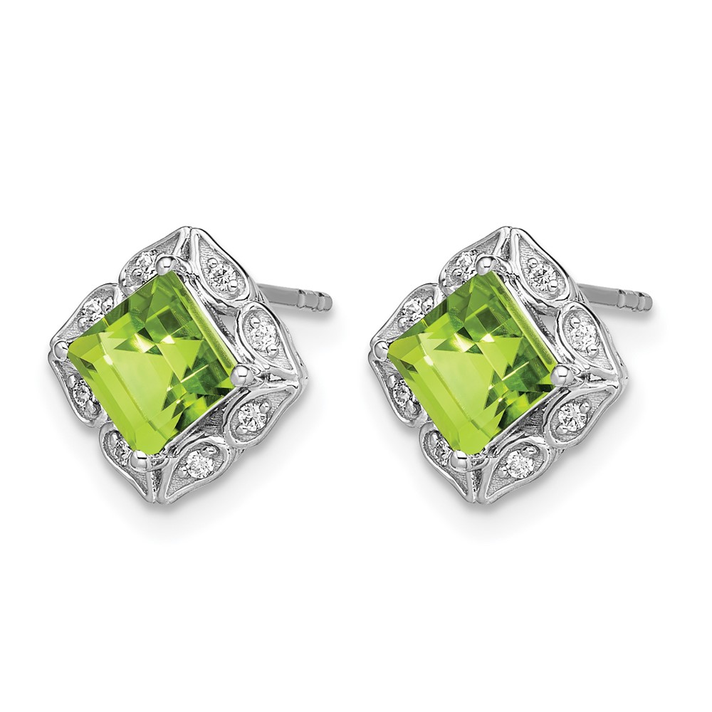 14k White Gold Square Peridot and Diamond Earrings