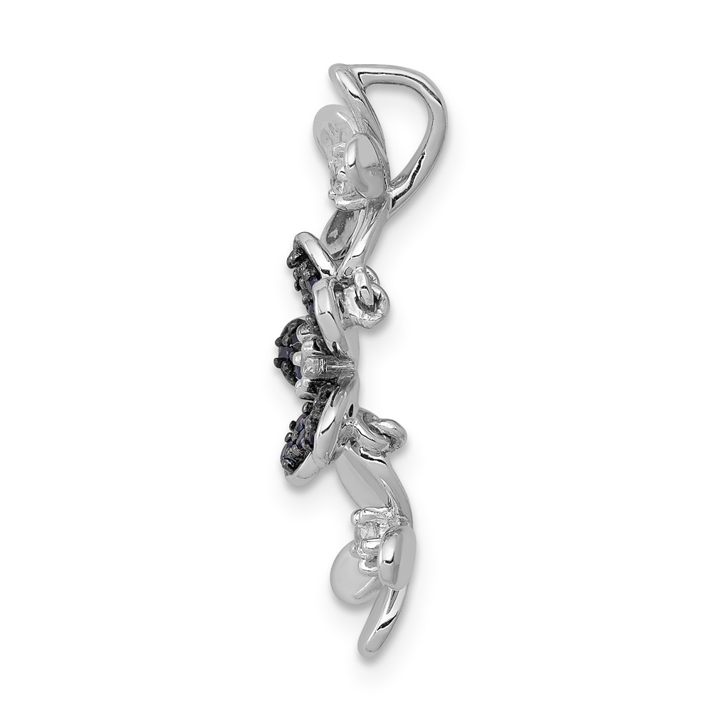 14k White Gold with Black Rhodium Diamond and Sapphire Three Flowers Chain Slide