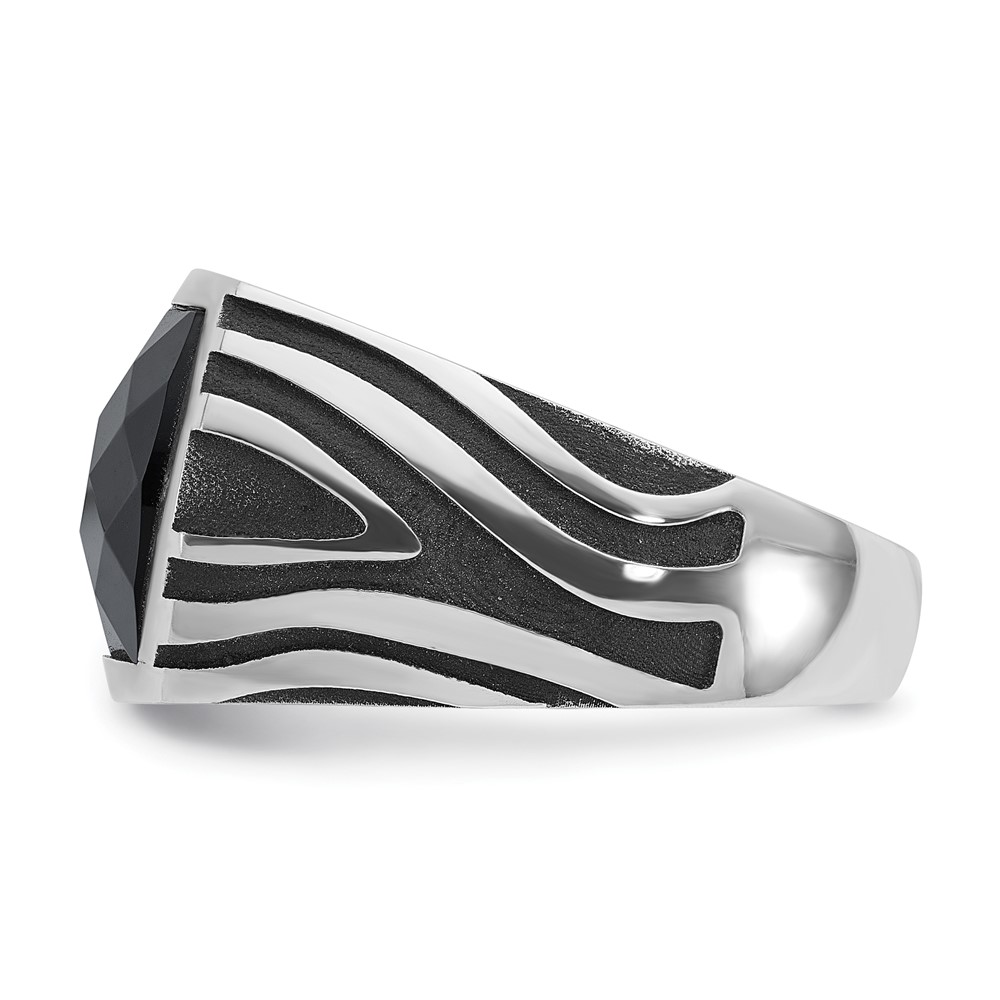 IBGoodman 14k White Gold Men’s Polished and Satin Onyx and .02 Carat AA Quality Diamond Ring