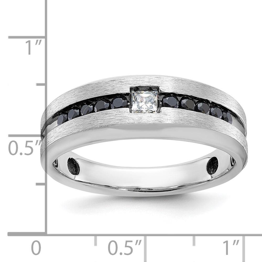 14k White Gold with Black Rhodium IBGoodman Men’s Polished and Brushed Black and White Diamond Complete Ring