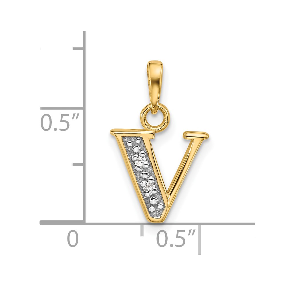 14K with Rhodium Diamond Letter V Initial Pendant