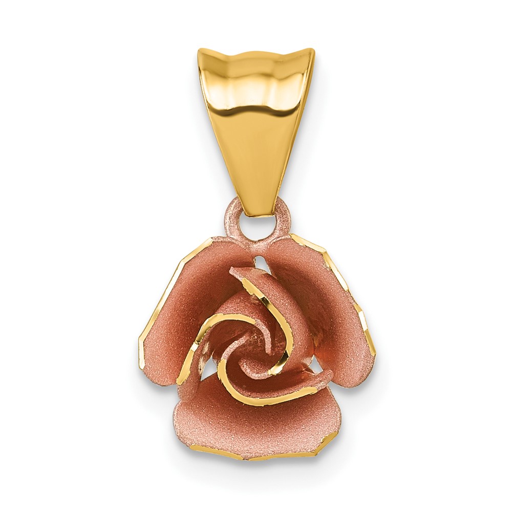 14k with Rose-tone Rhodium Brushed Rose Flower Pendant