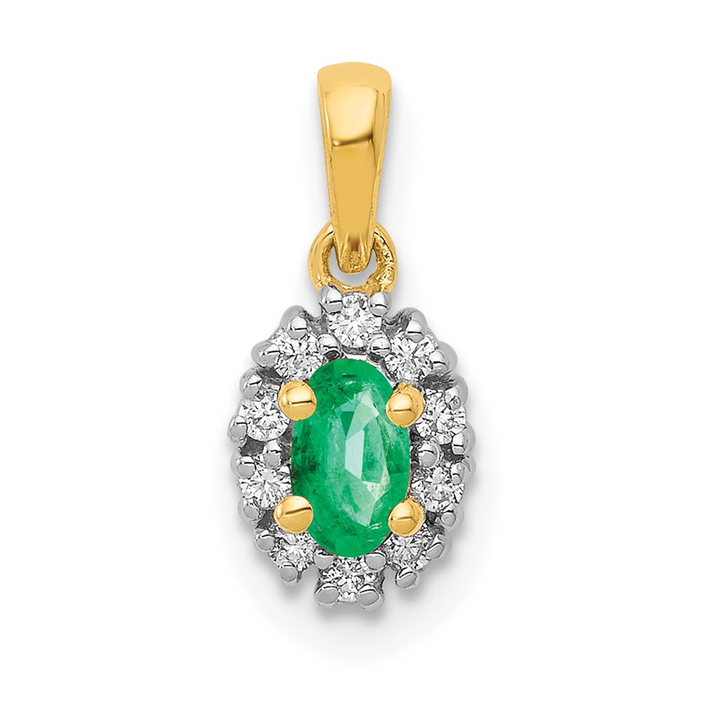 14k with White Rhodium Diamond and Oval Emerald Halo Pendant