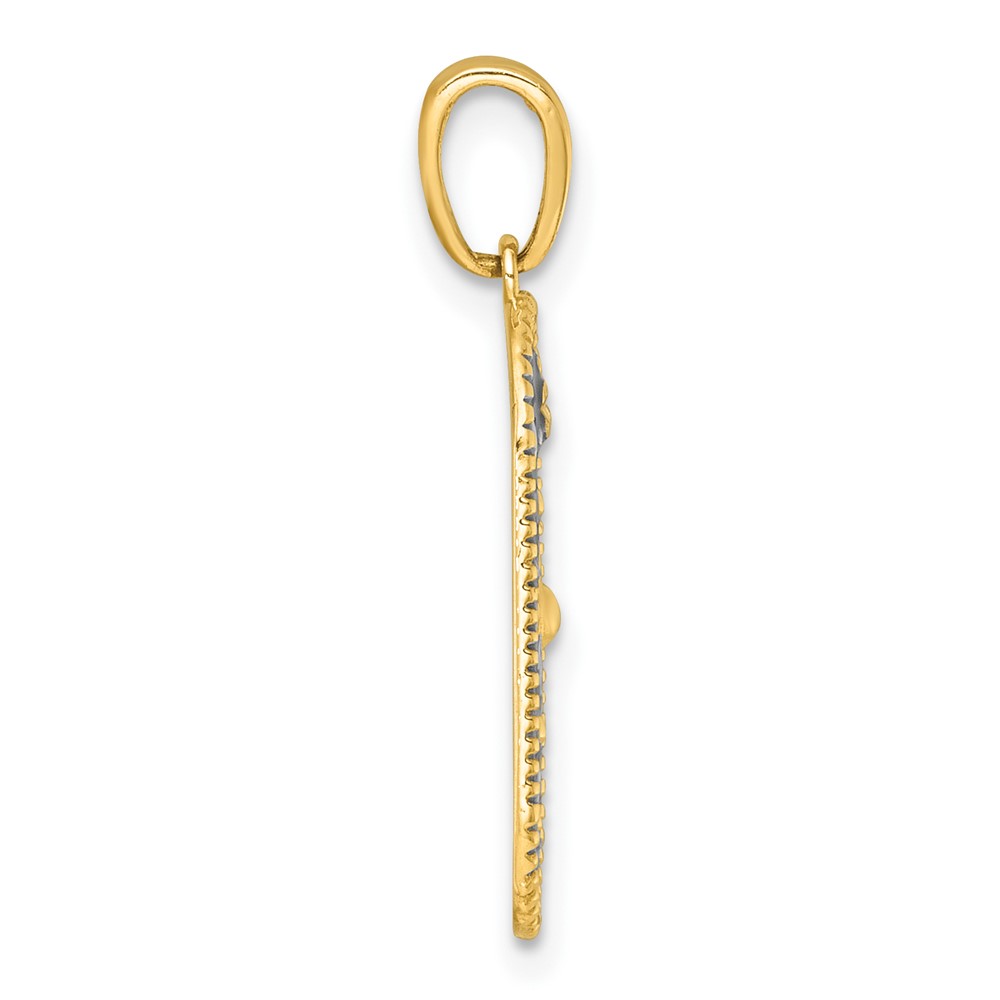 14k with White Rhodium Polished Blue Enamel Sun Moon and Stars Charm