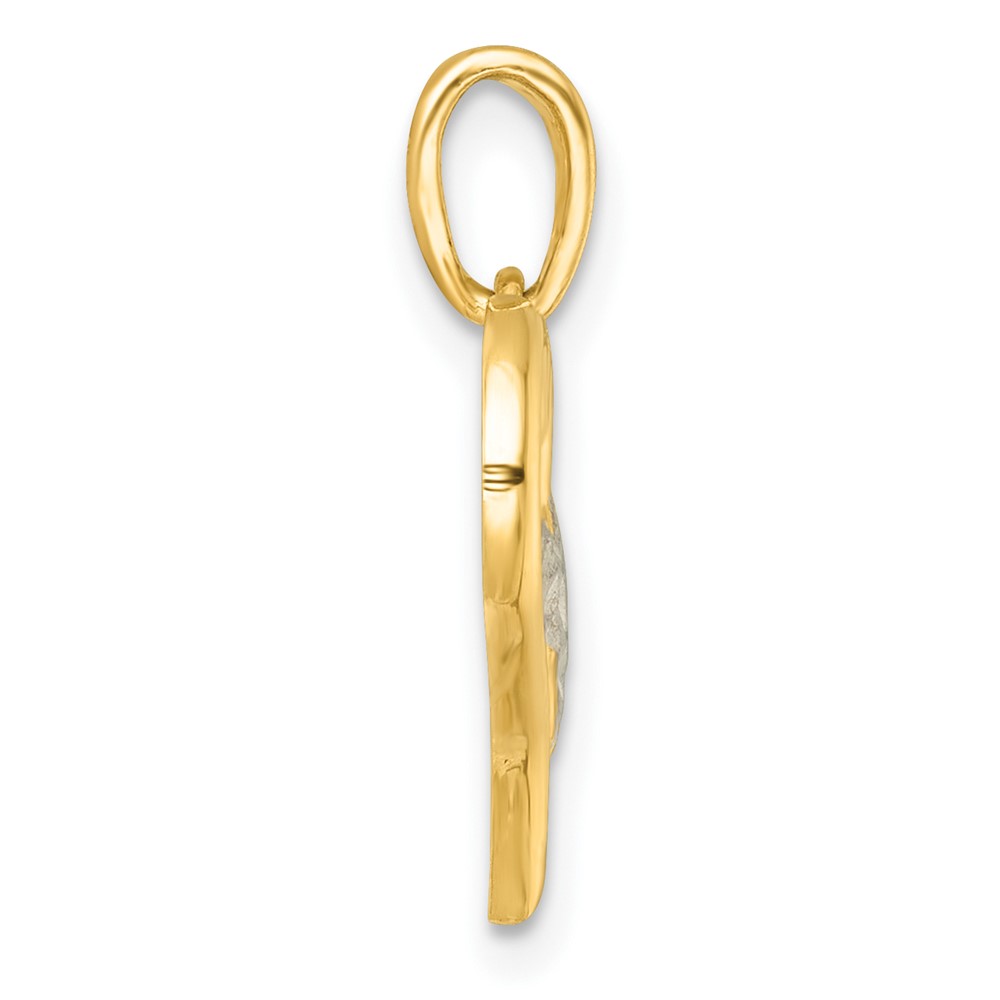 14k with White Rhodium Polished Heart Shape with Mini Heart Pendant