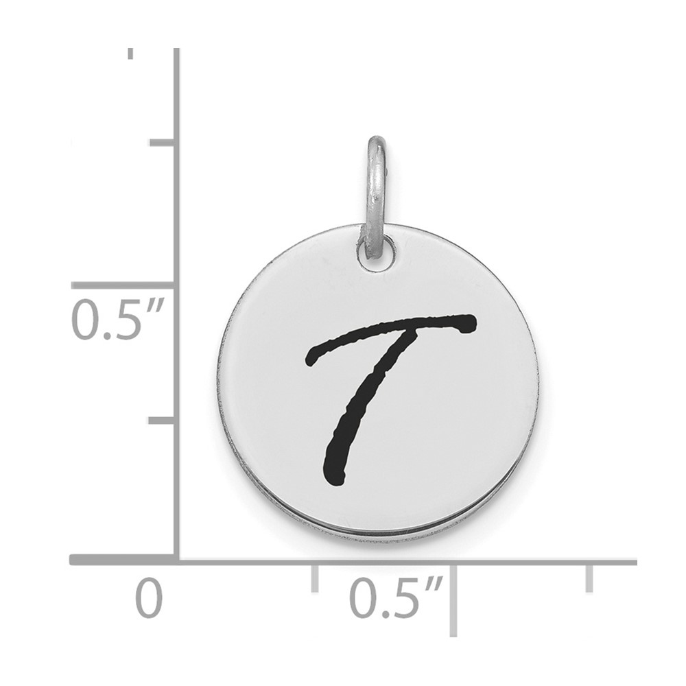 14kw Polished Black Enamel Letter T Initial Disk Charm
