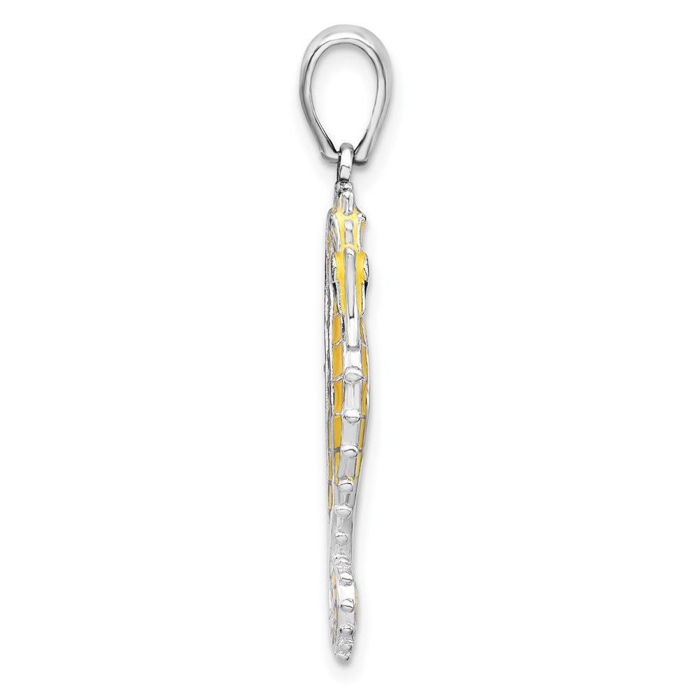 De-Ani Sterling Silver Rhodium-Plated 3D Enameled Yellow Seahorse Pendant