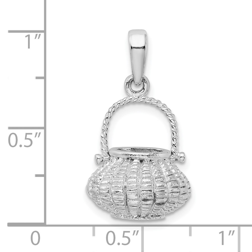 De-Ani Sterling Silver Rhodium-Plated 3D Flower Basket Moveable Handle Pendant