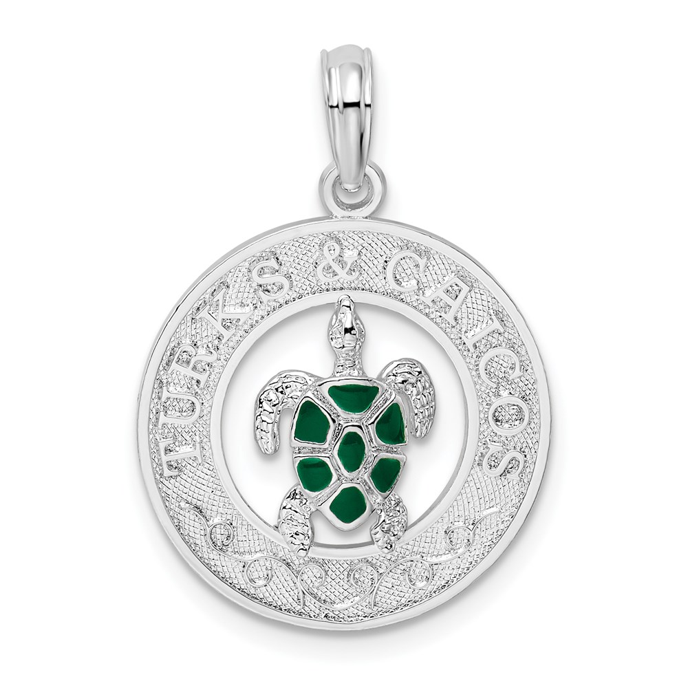 De-Ani Sterling Silver Rhodium-Plated Enameled Turks and Caicos with Turtle Pendant