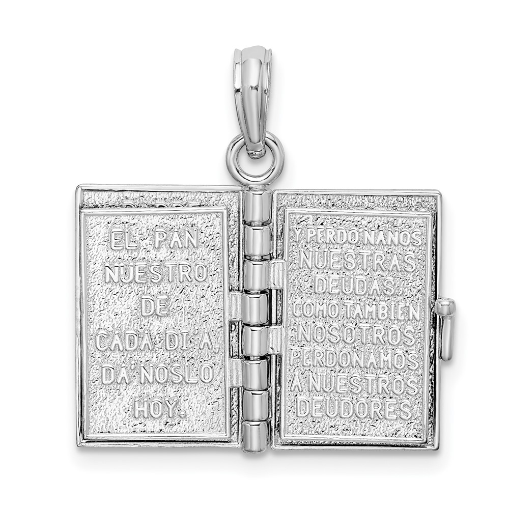 De-Ani Sterling Silver Rhodium-Plated Moveable 3D Spanish Santa Biblia Pendant