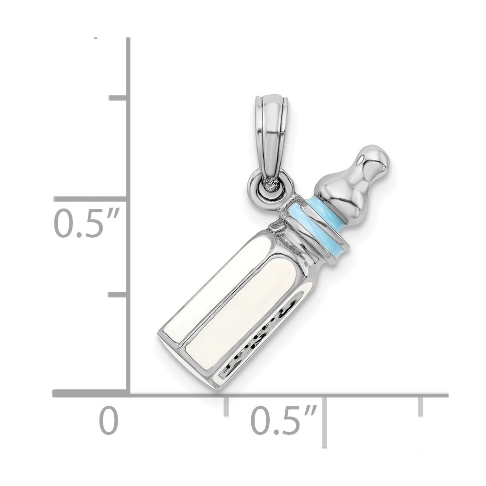 De-Ani Sterling Silver Rhodium-Plated Polished 3D Blue Baby Bottle Pendant
