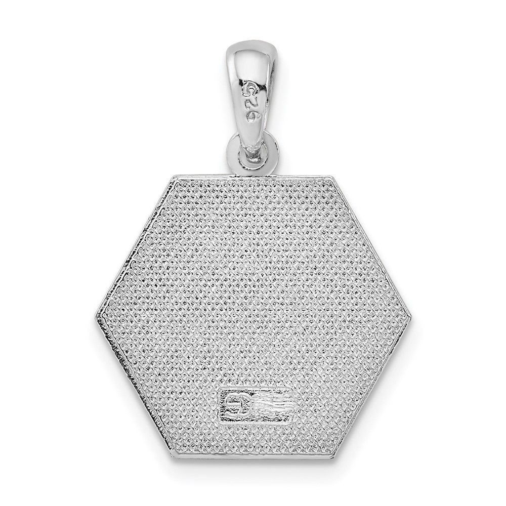 De-Ani Sterling Silver Rhodium-Plated Polished Caduceus Hexagon Disc Pendant