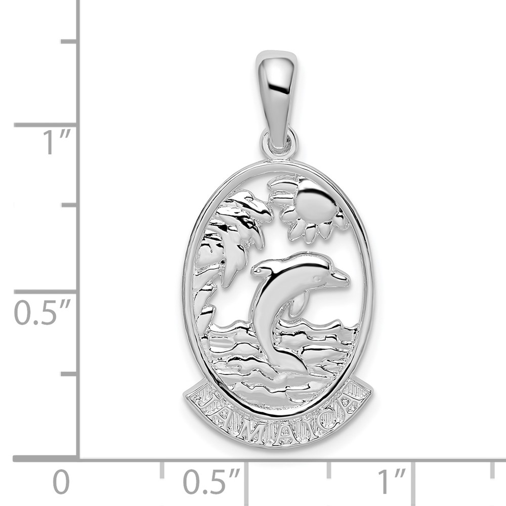 De-Ani Sterling Silver Rhodium-Plated Polished Jamaica Dolphin Sunset Pendant