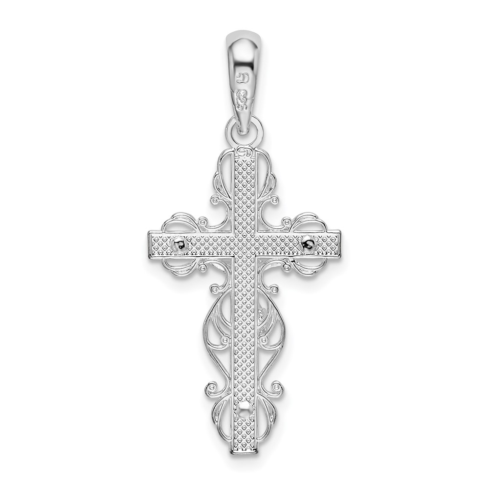 De-Ani Sterling Silver Rhodium-Plated Polished Lace Trim Crucifix Pendant