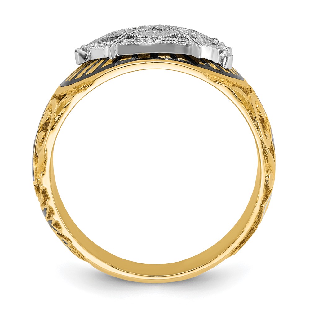 IBGoodman 14k Two-tone Men’s Polished and Textured with Black Enamel and Diamond Double Eagle Masonic Shriner’s Ring