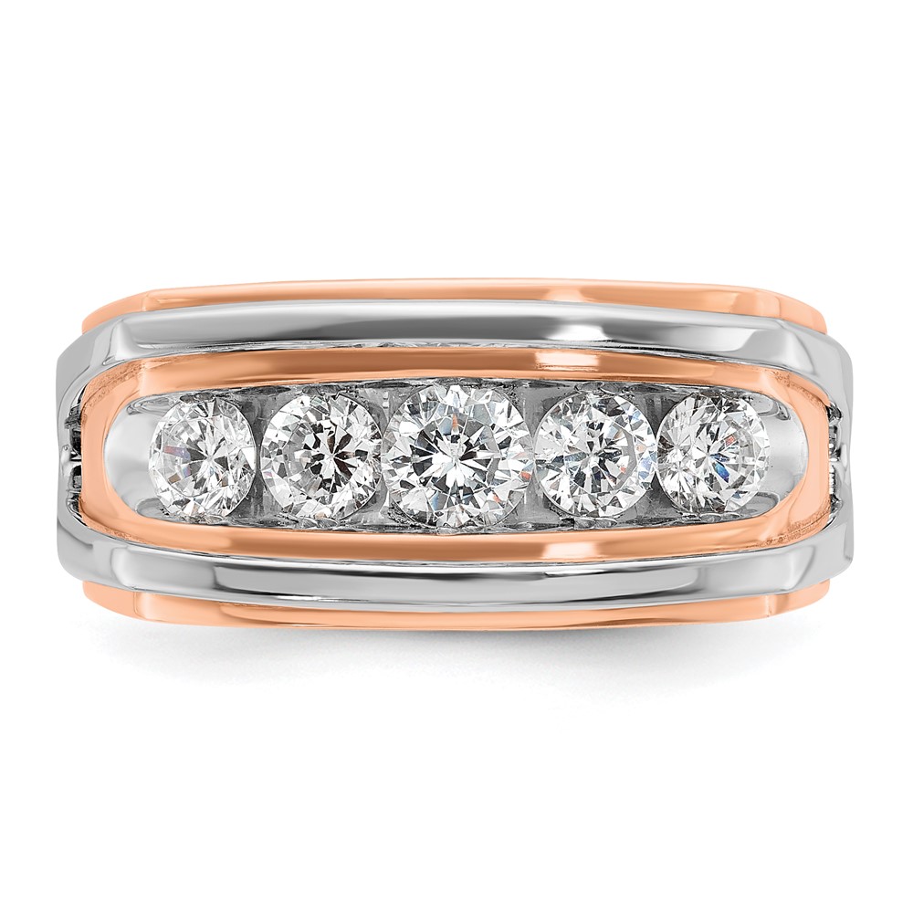 IBGoodman 10k White and Rose Gold Men’s Polished and Cut-Out 5-Stone 1 Carat A Quality Diamond Ring