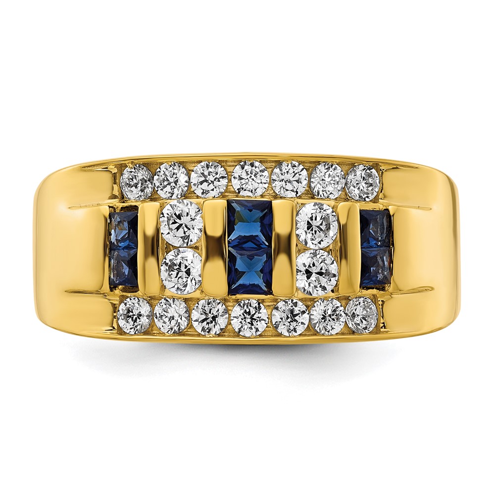 IBGoodman 14k 1 1/4 carat Lab Grown Diamond VS/SI+ G+ and Lab Created Blue Sapphire Complete Men’s Ring