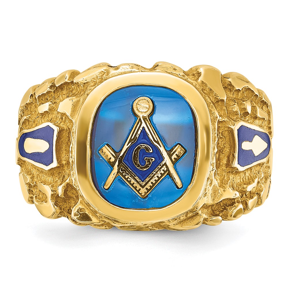 IBGoodman 14k Men’s Polished and Nugget Textured with Blue Enamel and Lab Created Sapphire Blue Lodge Master Masonic Ring