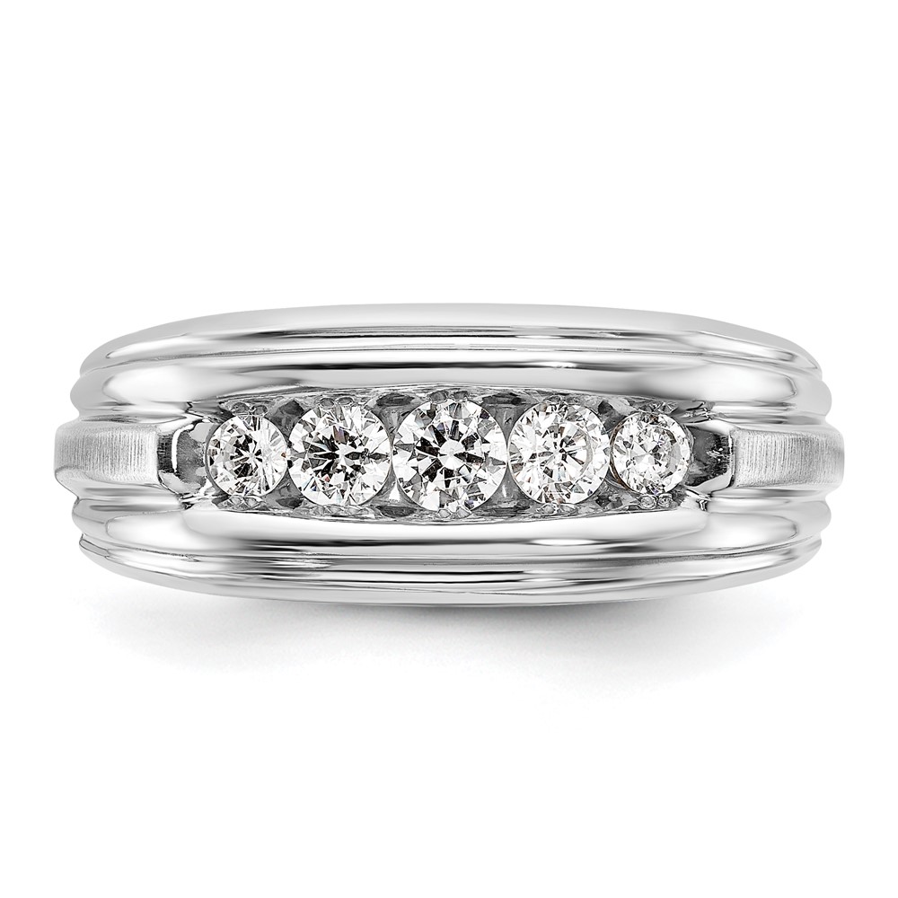 IBGoodman 14k Two-tone 1/2 carat Lab Grown Diamond VS/SI+ G+ Complete Polished Satin and Grooved Five Stone Men’s Ring