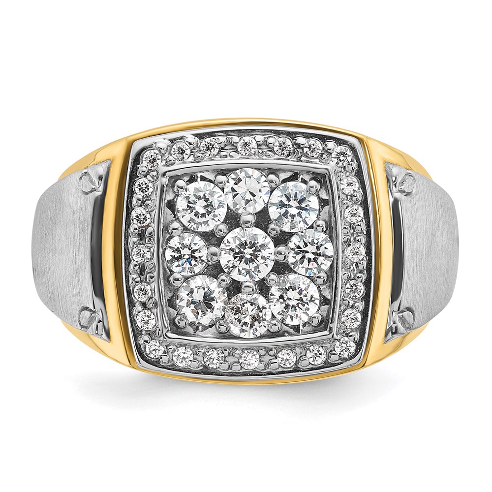 IBGoodman 14k Two-tone Men’s Polished and Satin 2 Carat AA Quality Diamond Cluster Ring