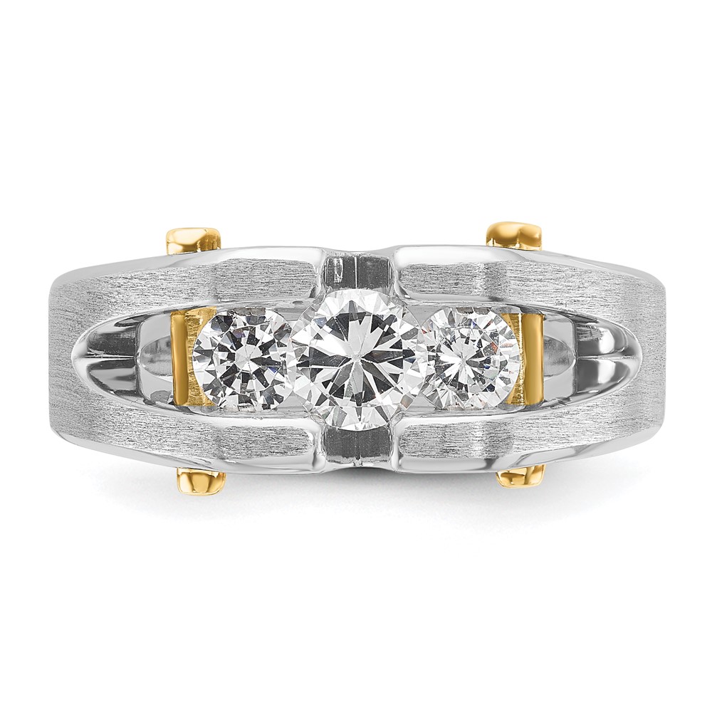 IBGoodman 14k Two-tone 3/4 carat Lab Grown Diamond VS/SI+ G+ Three Stone Complete Polished and Cut Out Men’s Ring
