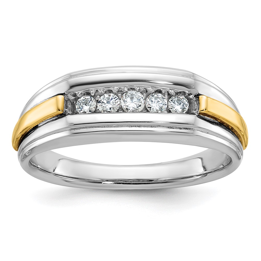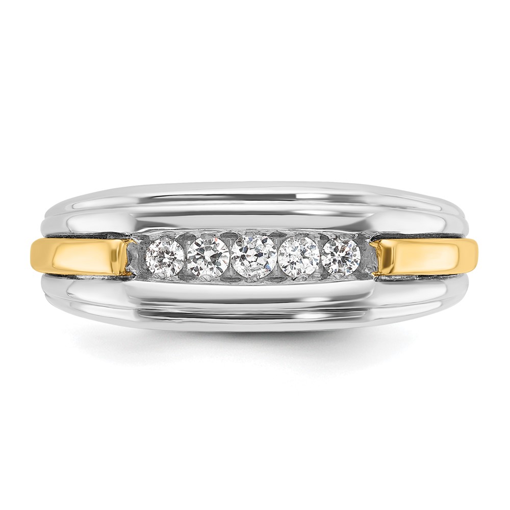 IBGoodman 14k Two-tone Men’s Polished and Grooved 5-Stone 1/4 Carat AA Quality Diamond Ring