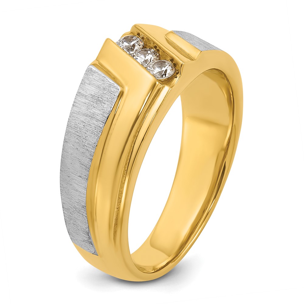 IBGoodman 14k Two-tone Men’s Polished Satin and Grooved 3-Stone Ring Mounting