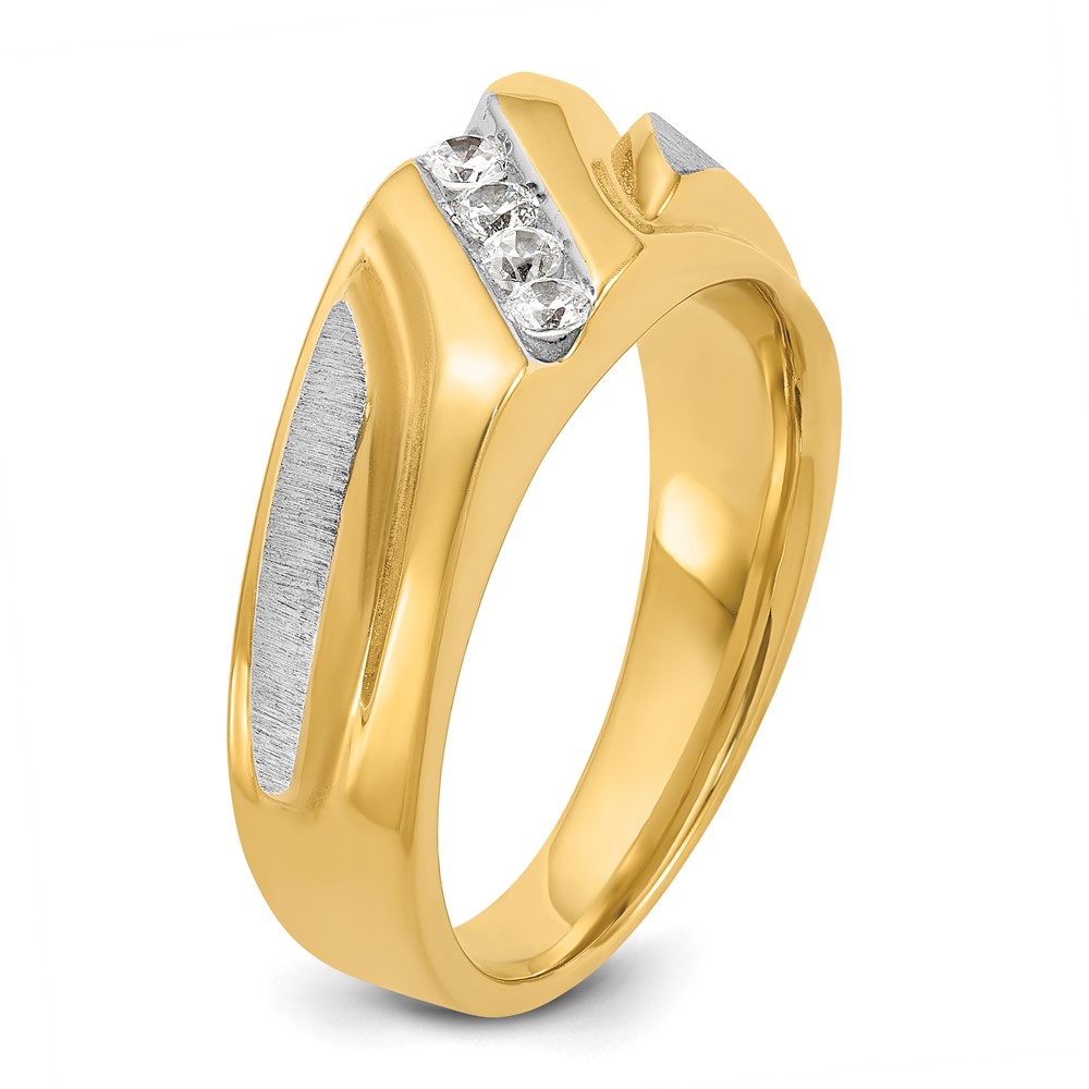 IBGoodman 14k Two-tone Men’s Polished Satin and Grooved 4-Stone 1/4 Carat AA Quality Diamond Ring