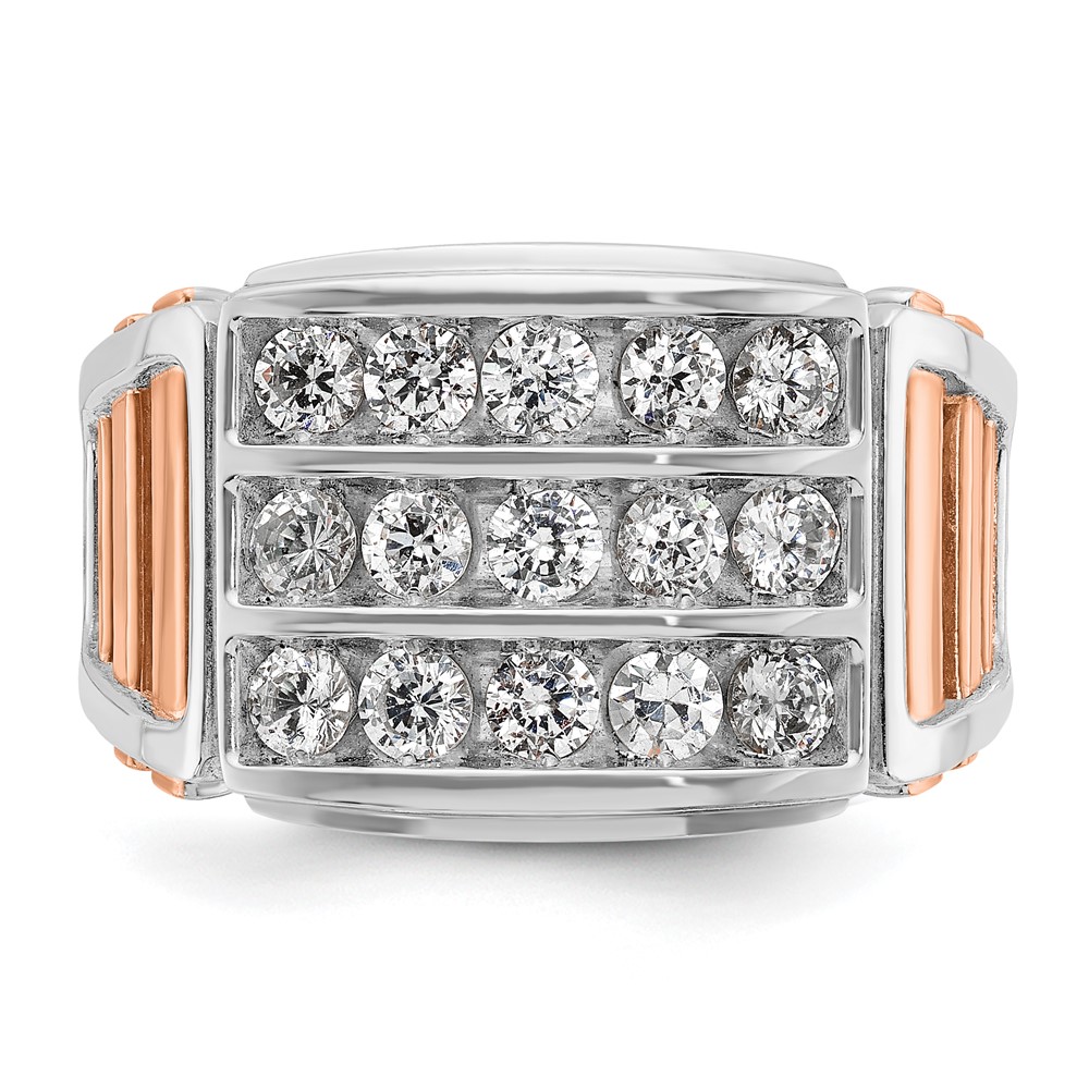 IBGoodman 14k Two Tone Rose and White Gold 1 5/8 carat Lab Grown Diamond VS/SI+ G+ Complete Three-Row Cut-Out Men’s Ring