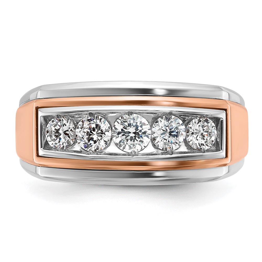 IBGoodman 14k White and Rose Gold Men’s Polished and Grooved 5-Stone 1 Carat AA Quality Diamond Ring