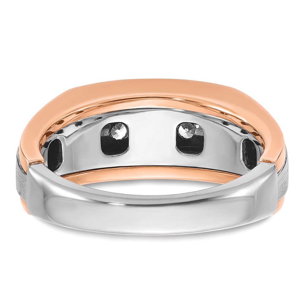 IBGoodman 14k White and Rose Gold Men’s Polished Satin and Grooved 5-Stone 1/2 Carat AA Quality Diamond Ring