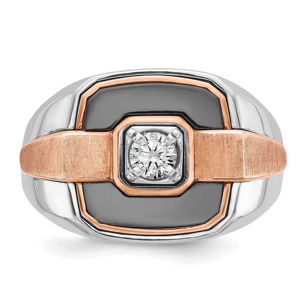 IBGoodman 14k White and Rose Gold with Black Rhodium Men’s Polished and Satin 1/3 Carat AA Quality Diamond Ring