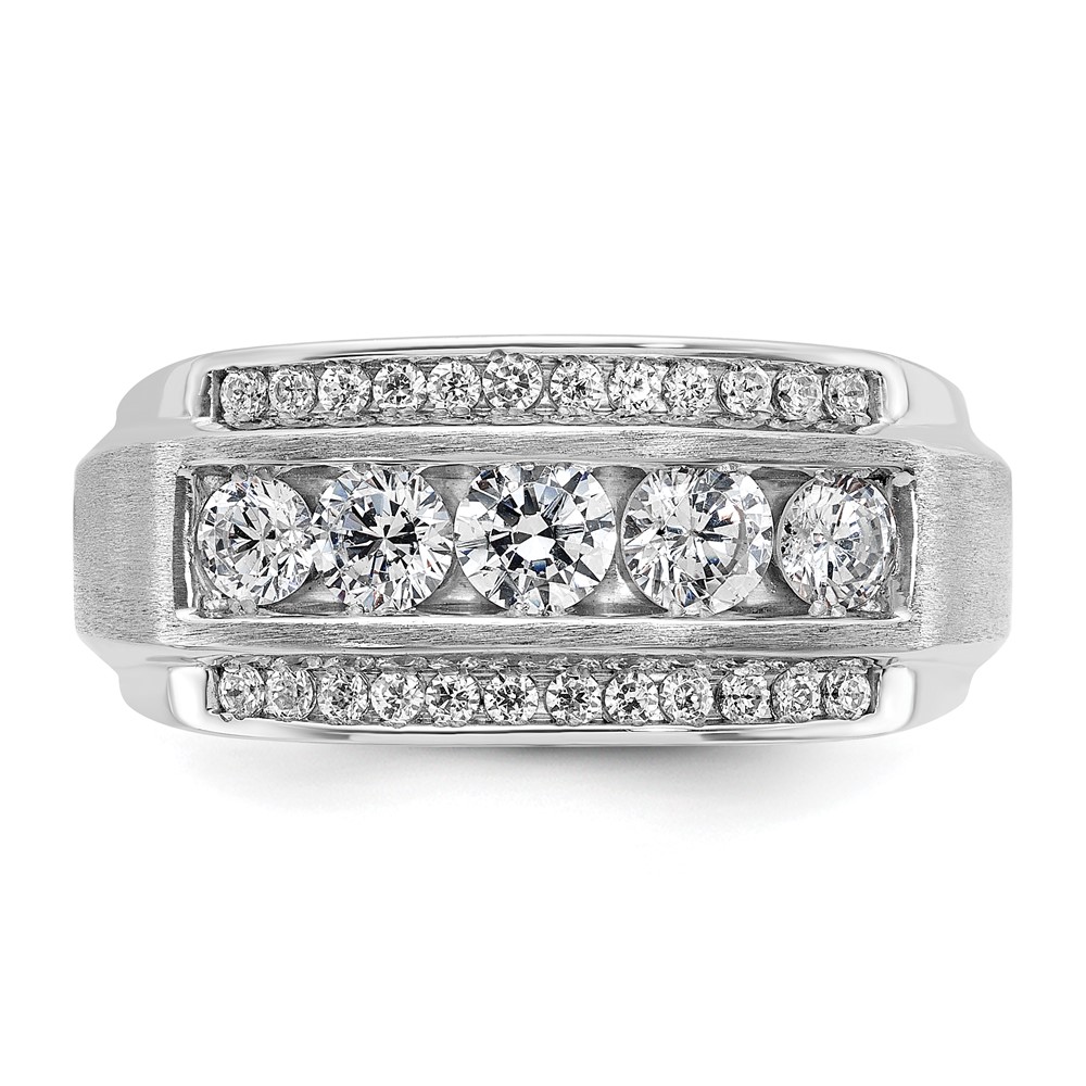 IBGoodman 14k White Gold 1 7/8 carat Lab Grown Diamond VS/SI+ G+ Complete Polished and Satin Three Row Men’s Ring