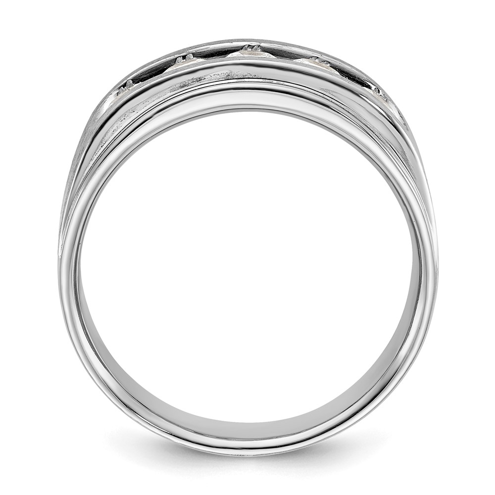 IBGoodman 14k White Gold Polished Satin and Grooved Five Stone Men’s Ring Mounting