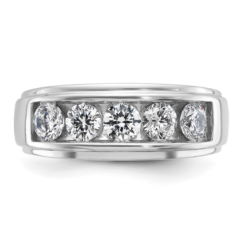 IBGoodman 14k White Gold Men’s Polished and Grooved 5-Stone 1 1/5 Carat AA Quality Diamond Ring