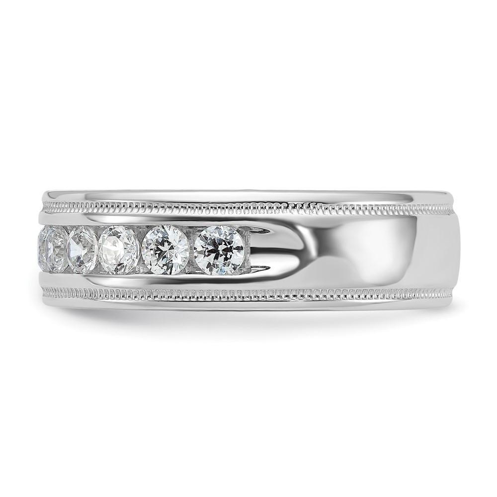 IBGoodman 14k White Gold Men’s Polished and Milgrain 11-Stone 1 Carat AA Quality Diamond Ring