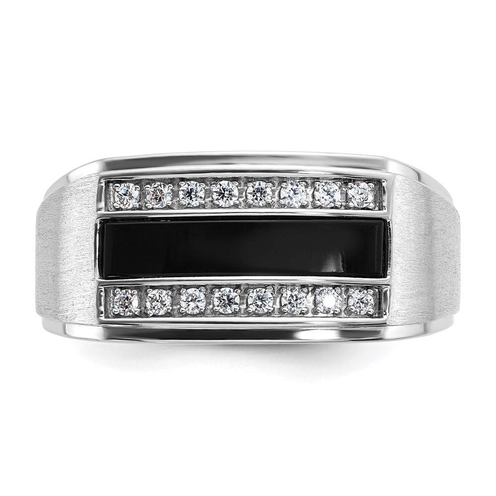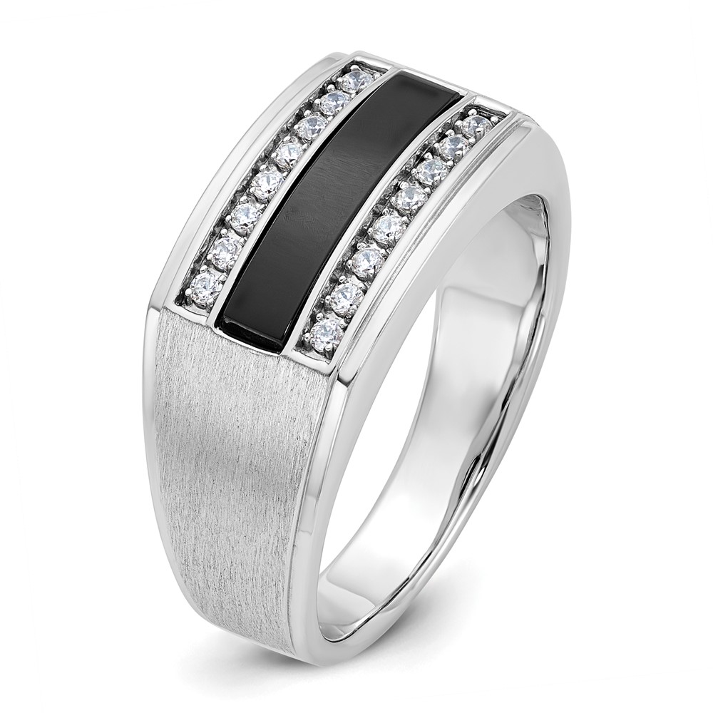 IBGoodman 10k Men's Polished and Satin Onyx and 1/6 Carat A Quality Diamond Ring