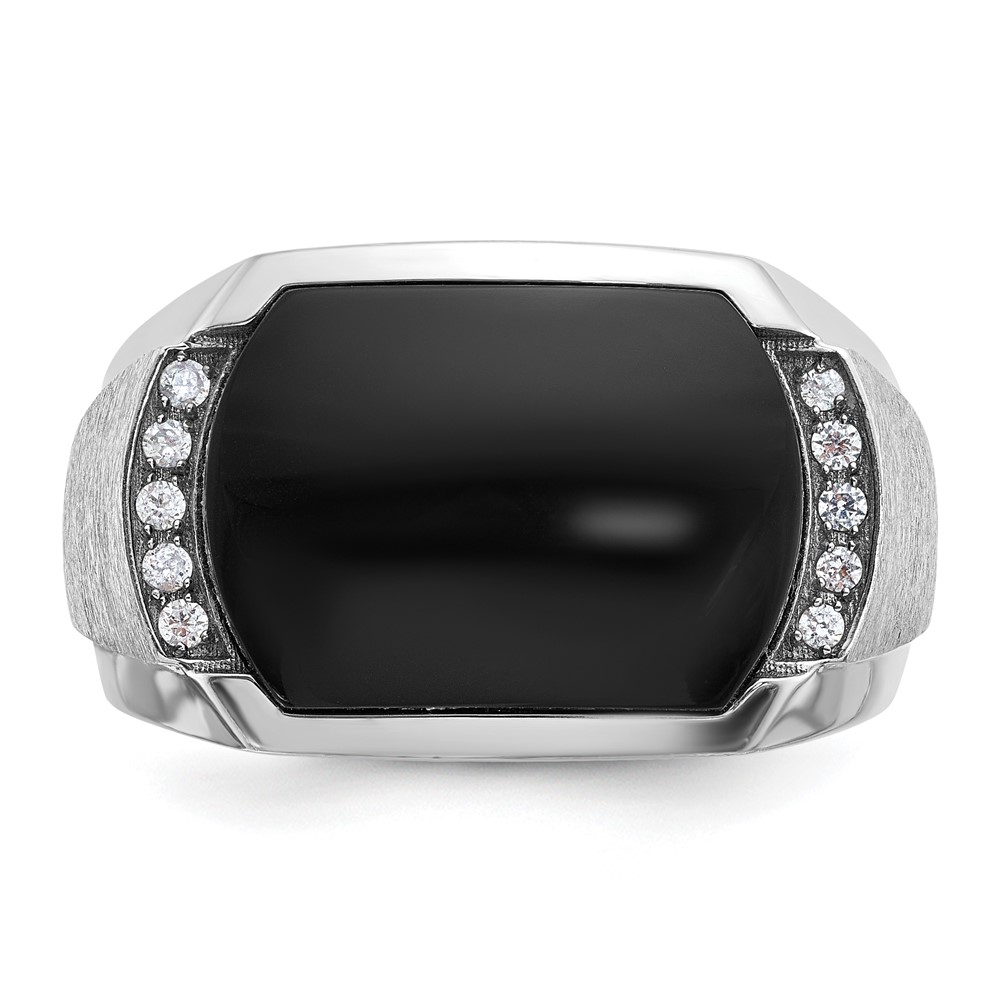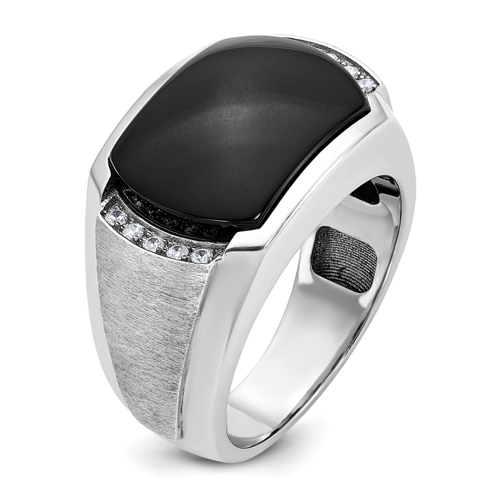 IBGoodman 14k White Gold Men’s Polished and Satin Onyx and 1/10 Carat AA Quality Diamond Ring