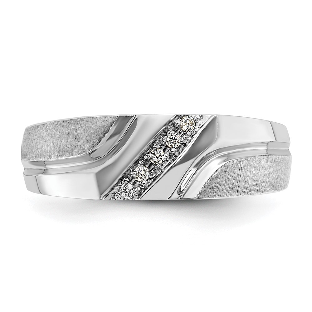IBGoodman 14k White Gold Men’s Polished Satin and Grooved 5-Stone 1/20 Carat AA Quality Diamond Ring
