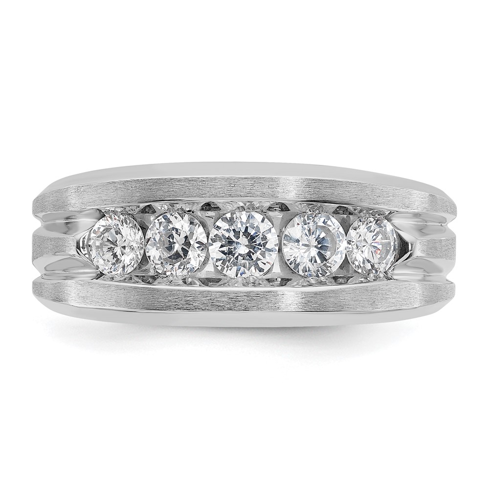 IBGoodman 14k White Gold Men’s Polished Satin and Grooved 5-Stone Ring Mounting