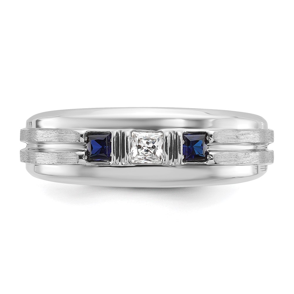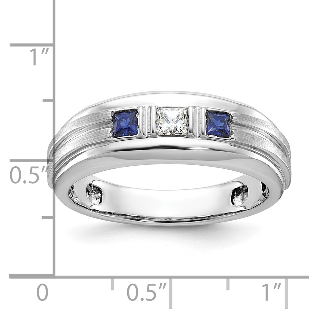 IBGoodman 14k White Gold Men’s Polished Satin and Grooved Square 3-Stone Ring Mounting