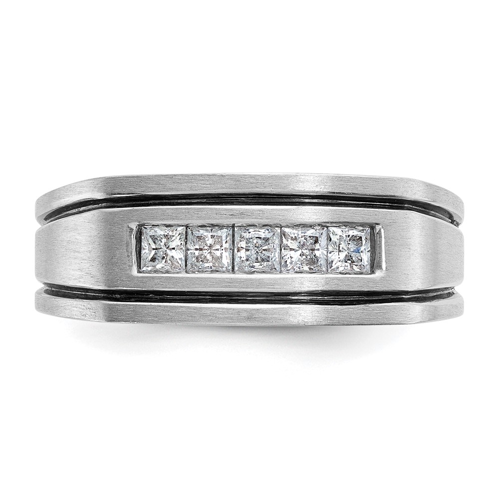 IBGoodman 14k White Gold Men’s Polished Satin and Grooved Square 5-Stone Ring Mounting