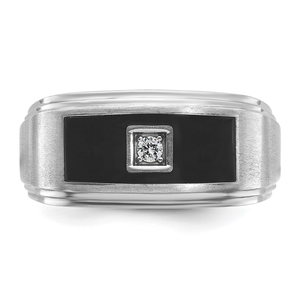 IBGoodman 14k White Gold with Black Enamel Men’s Polished Satin and Grooved 1/20 Carat AA Quality Diamond Ring