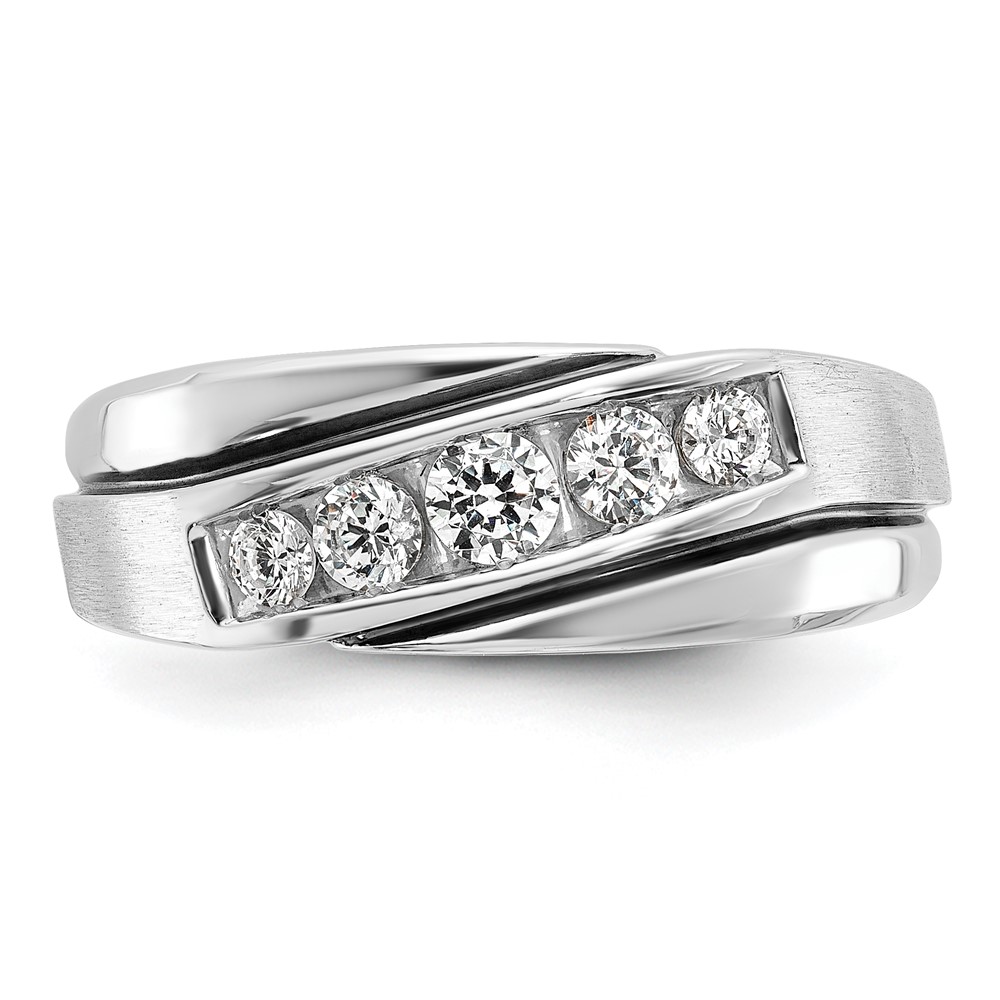 IBGoodman 14k White Gold with Black Rhodium 1/2 carat Lab Grown Diamond VS/SI+ G+ Complete Polished Satin and Grooved Men’s Ring